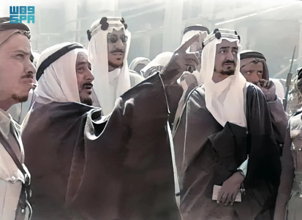 Perjalanan dokumentasi berlanjut ke tahun 1374 H (1955 M), dengan foto perluasan Al-Masaa selama musim haji. Atap baru dipasang di jalur Sa’i untuk melindungi jamaah dari sengatan matahari. Setahun kemudian, foto Raja Saud bin Abdulaziz Al Saud sedang memeriksa Hajar Aswad terekam, menampilkan momen langka saat batu suci itu belum terpasang cincin perak.